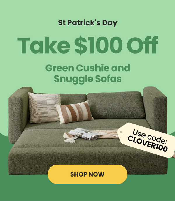 St Patrick's Day -Take $100 off green Cushie and Snuggle sofas