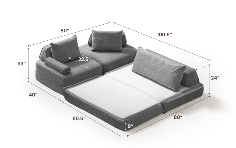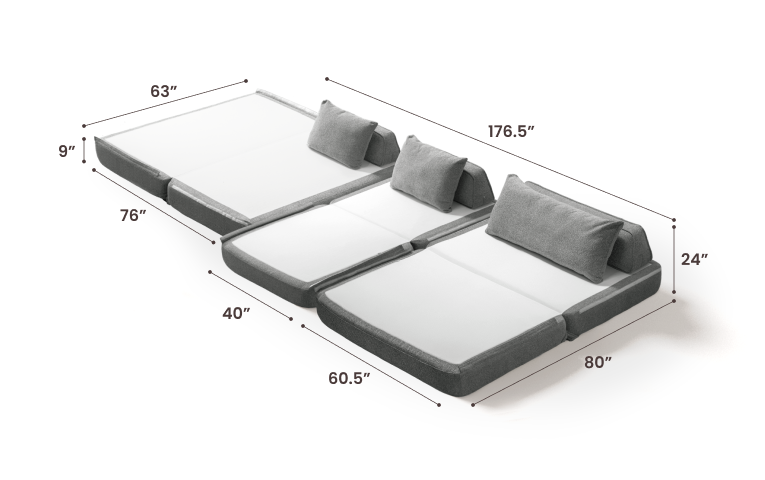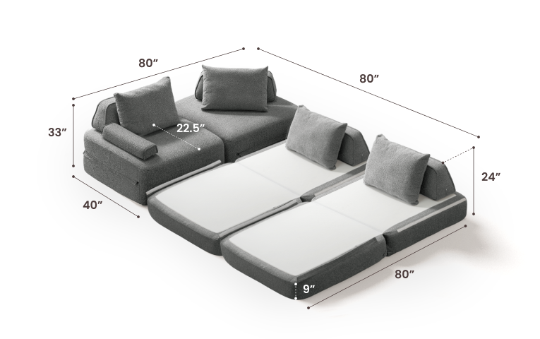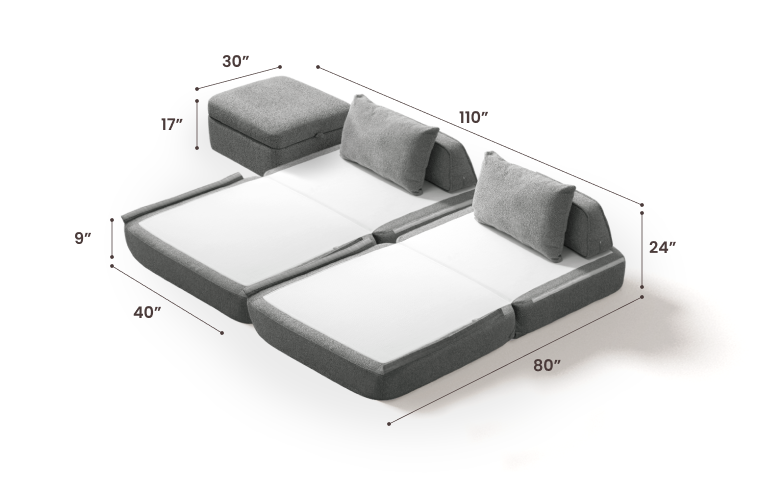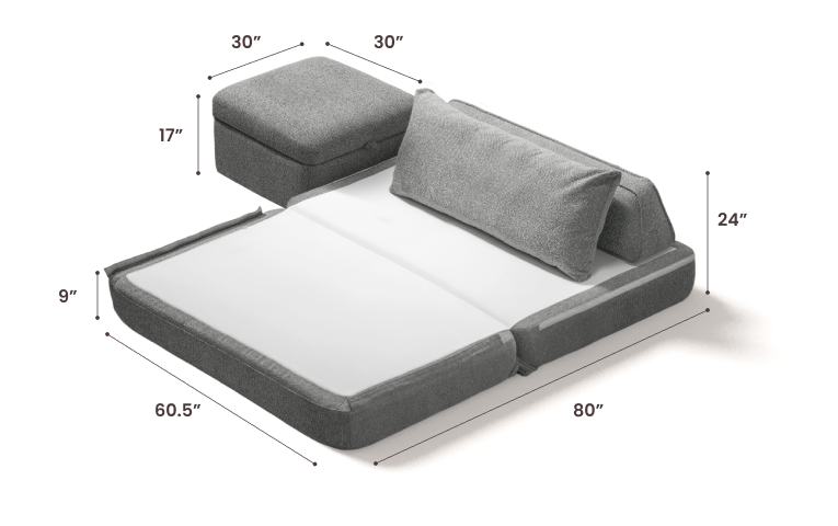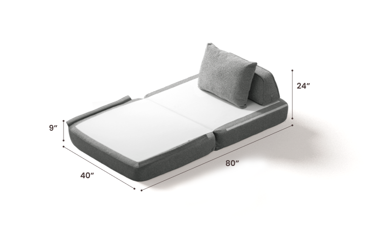 Cushie transforms from a stylish seat to a cozy bed in seconds—just flip and snooze. Unlike traditional sleeper sofas with noisy metal frames and complex pull-outs, Cushie keeps it simple and silent.