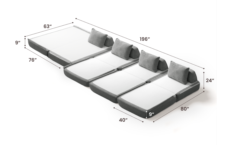 Cushie converts to a true Twin, Full, Queen, or King-sized mattress surface. Check each model for exact measurements.