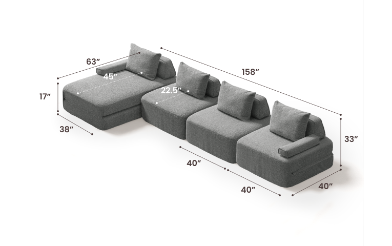 Rearrange, expand, or downsize anytime. Cushie grows with your space.