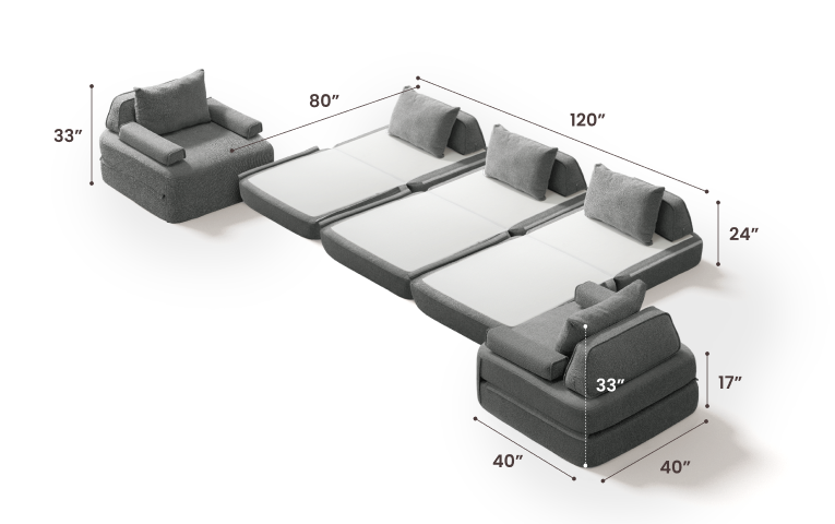 Cushie transforms from a stylish seat to a cozy bed in seconds—just flip and snooze. Unlike traditional sleeper sofas with noisy metal frames and complex pull-outs, Cushie keeps it simple and silent.